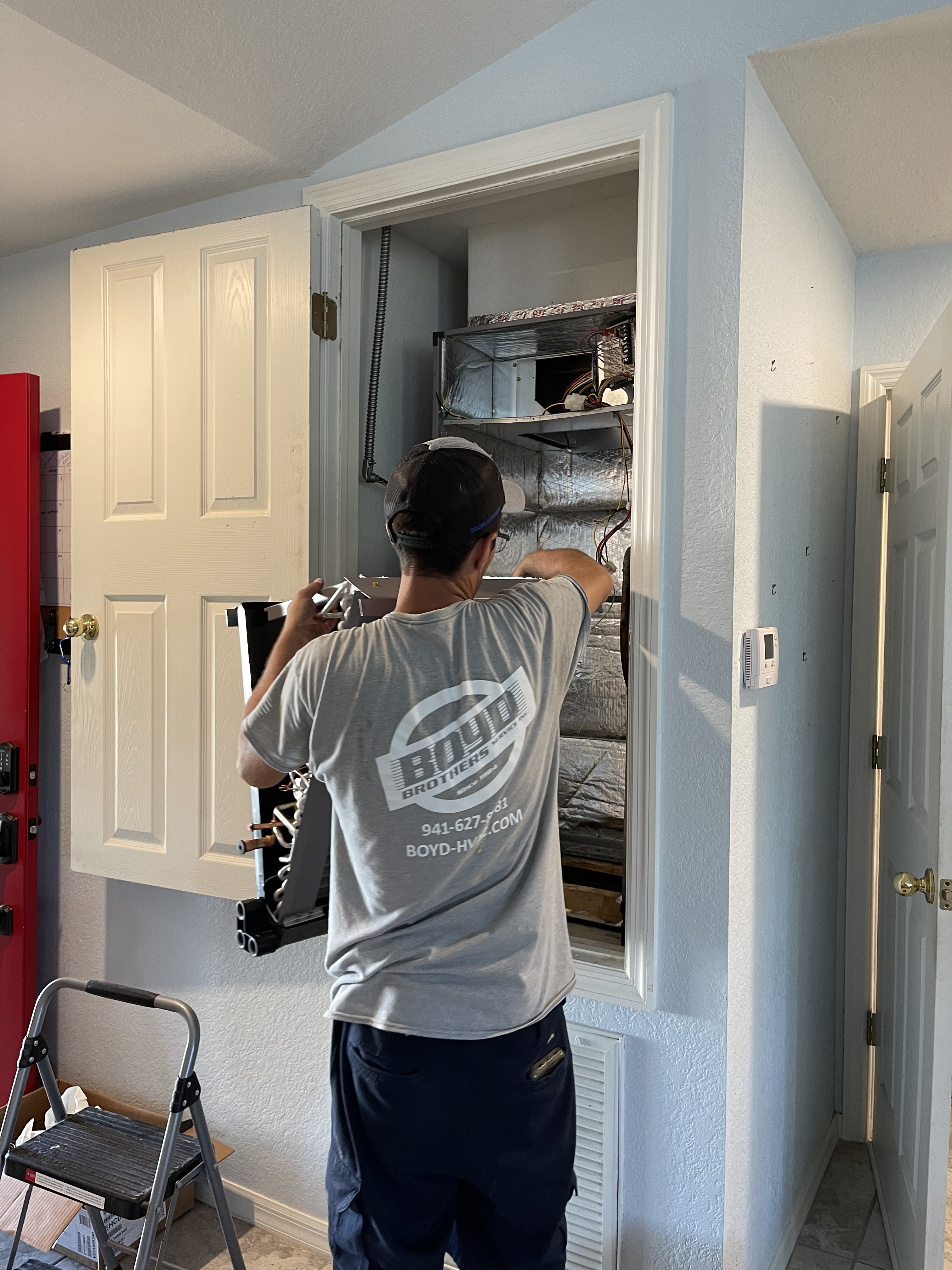Boyd Brothers Service Inc. is your trusted local expert in Southwest Florida for all HVAC, electrical, and building automation needs. With over 40 years of industry experience, our licensed HVAC contractor (CAC043852) and licensed electrical contractor (EC13002665) team provides professional, reliable, and high-quality solutions for both residential and commercial clients. We specialize in AC installation, AC repair, and AC maintenance, along with heating systems, ductwork, indoor air quality solutions, commercial HVAC services, electrical upgrades, and automation systems. Whether you need a new air conditioning system, routine maintenance, or emergency repair service, Boyd Brothers Service Inc. is committed to getting the job done right the first time — ensuring your comfort, safety, and satisfaction year-round. Proudly serving Venice, Englewood, North Port, Port Charlotte, Punta Gorda, Cape Coral, Arcadia, Fort Myers, and surrounding areas, we deliver dependable comfort backed by decades of experience and customer-focused service. Boyd Brothers Service Inc. — Cool Comfort. Wired Excellence.